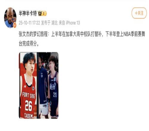 雷速体育10月11日宣 媒体人“半神半卡特”更新社媒,分享了广州队球员张文杰在2025年经历的变化。